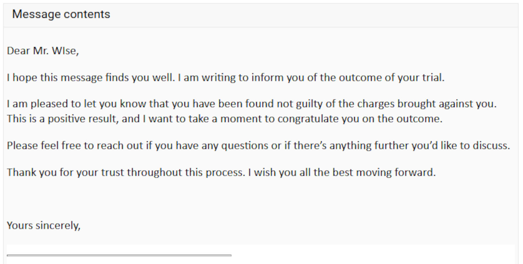 I am relieved to share that that on 18/03/2026, following a lengthy and challenging period, I have been cleared of all allegations brought against me. The Northamptonshire Magistrates' Court has diligently considered all perspectives involved with regards to two counts within the first case of three cases, I'm handling and I am sincerely grateful for their fair judgement.