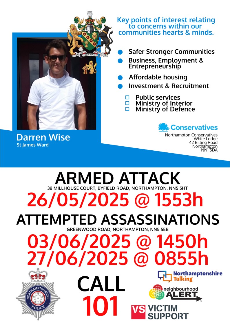 My personal popularity has been gradually increasing within the local community, largely due to my long-term commitment to research and development, which I have undertaken independently and throughout using my own personal means. In addition to this, my advocacy for the Conservative Party has seemingly attracted the attention of a domestic terror cell operating amidst the crime wave, consisting of a predisposed gang of extremists. I have been attacked once and have survived two additional gang armed assassination attempts with one featuring a roadblock, alone, unarmed whereby walking-in and walking-out in a calm professional manner as expected of my candidature, life experiences.